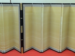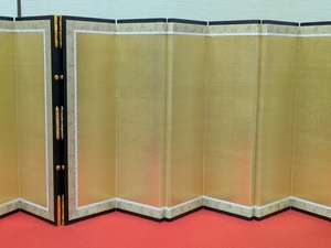 一番目は絹目の金屏風です。絹地の上に金箔を施してあります。表面に少し柔らかさが出ます。
