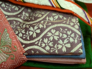 下はS字曲線がならんだ「立涌(たてわく)」という文様です。間に桜が入っているので「桜立涌」と呼ばれます。