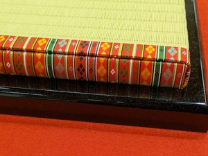 上の画像はお雛さまののっている親王台の前についている縞模様で、「繧繝(うんげん)」と呼ばれています。緋毛氈にもよくついています。