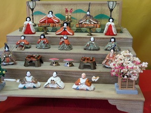 ◇参考:一番下の写真は、今、販売中のお雛さまです。幅60cmほどの小さなお雛さまです。幸せなお雛さまになってほしいです。