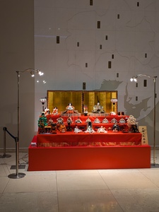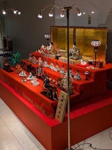 この展示会は4月7日までですが、これにも意味があります。よく、3日に片付けないと・・・ということが言われますが、これは昭和40年代にある人が発した言葉で広まってしまったフェイクで、これによってお雛さまを後ろにむければいい、なんていうとんでもない作法(?)まで生まれることになりました。ひな祭りは桜が咲いているのを見ればわかるように、本来は旧暦で行われるものです。だから、旧暦または月遅れの3月3日まで開催されるのです。お雛様の片付けは、3月4日にお雛様に対してお礼のお供えをして、その後、お天気の良い、時間に余裕があるときにゆっくり片付けるものなのです。縁起悪いので後ろ向けないでください。雛祭りは元来「宵祭り」なので、電灯のない時代、夜中に片付けるのはもともと不可能なのです。