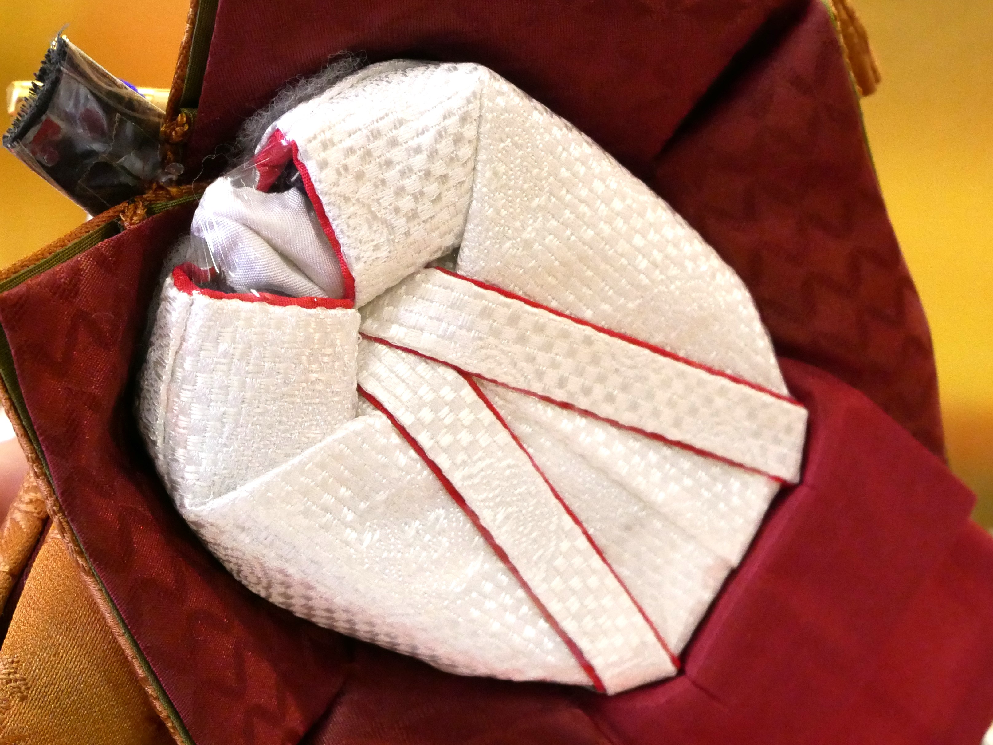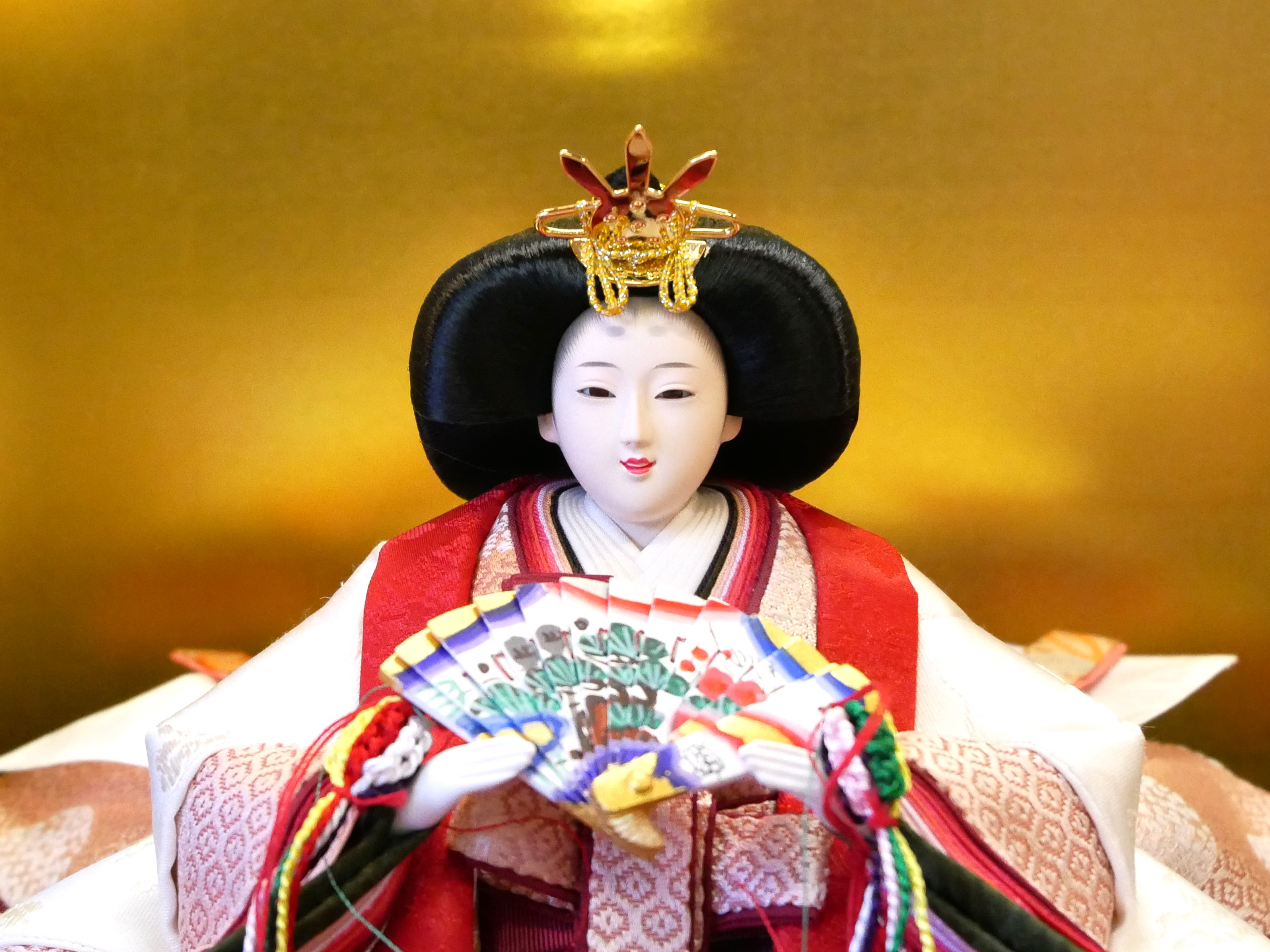 ・男雛の冠はお人形に結んでありません。お顔を触らないよう、丁寧に紐を結んでください。