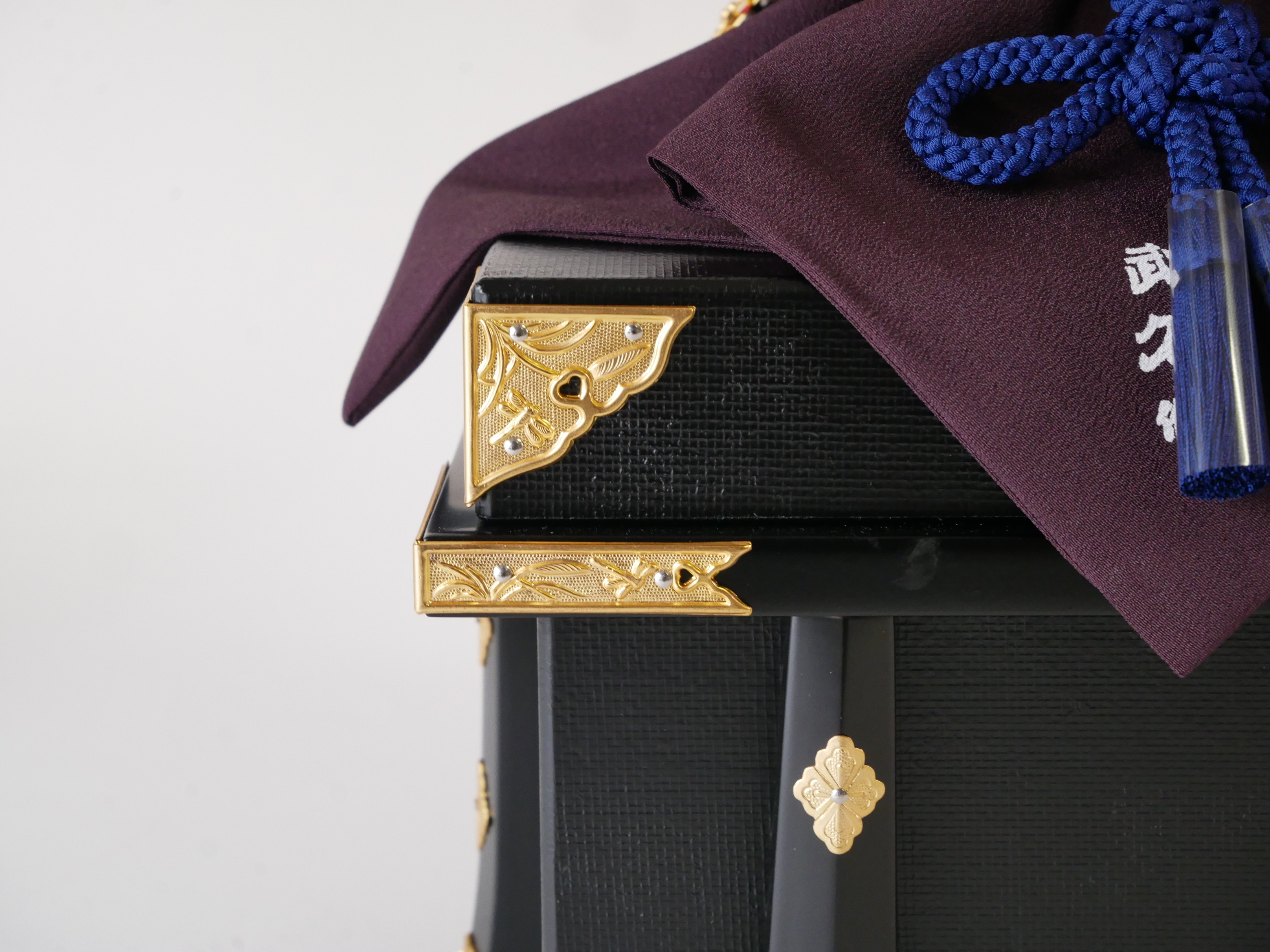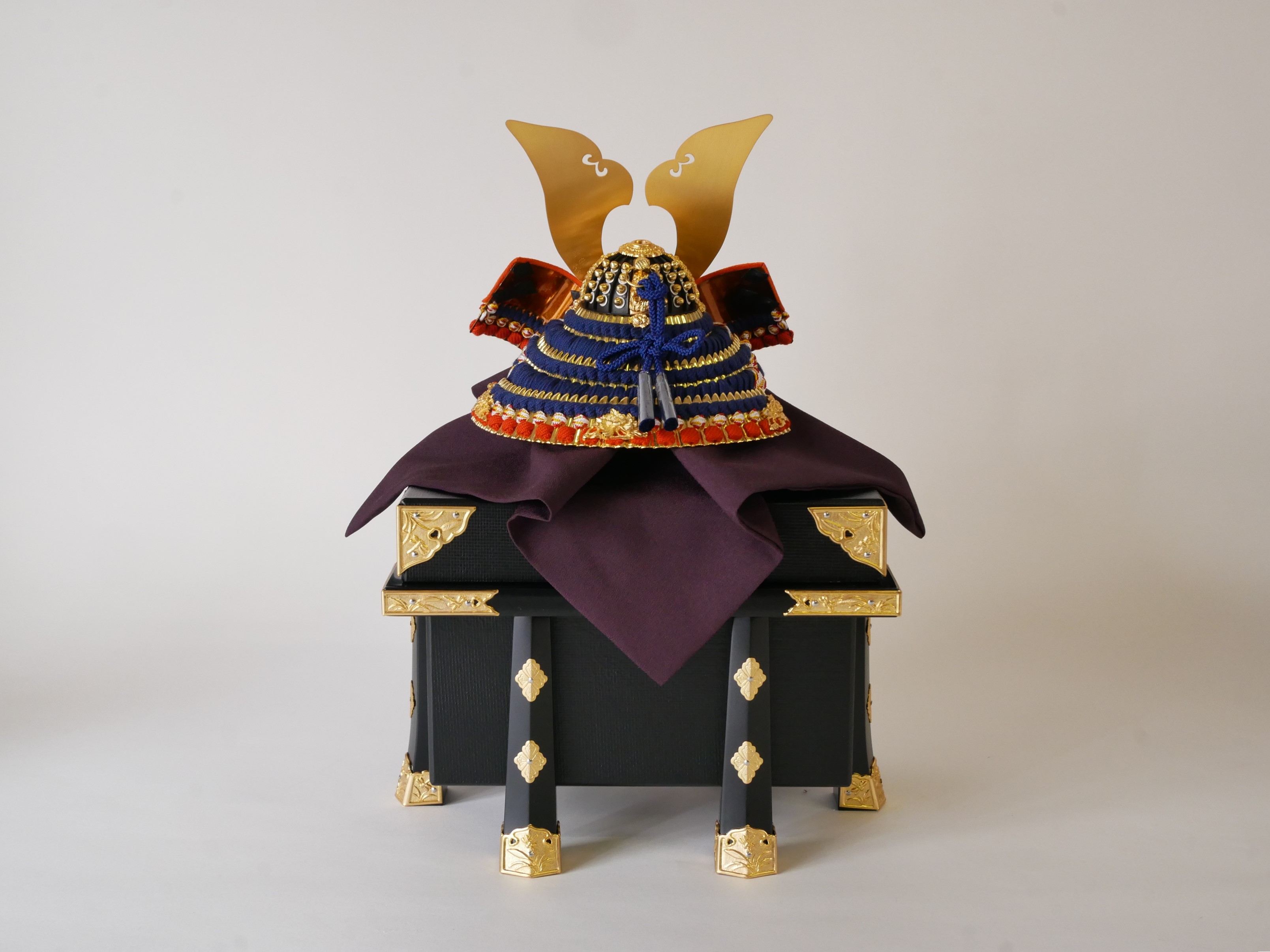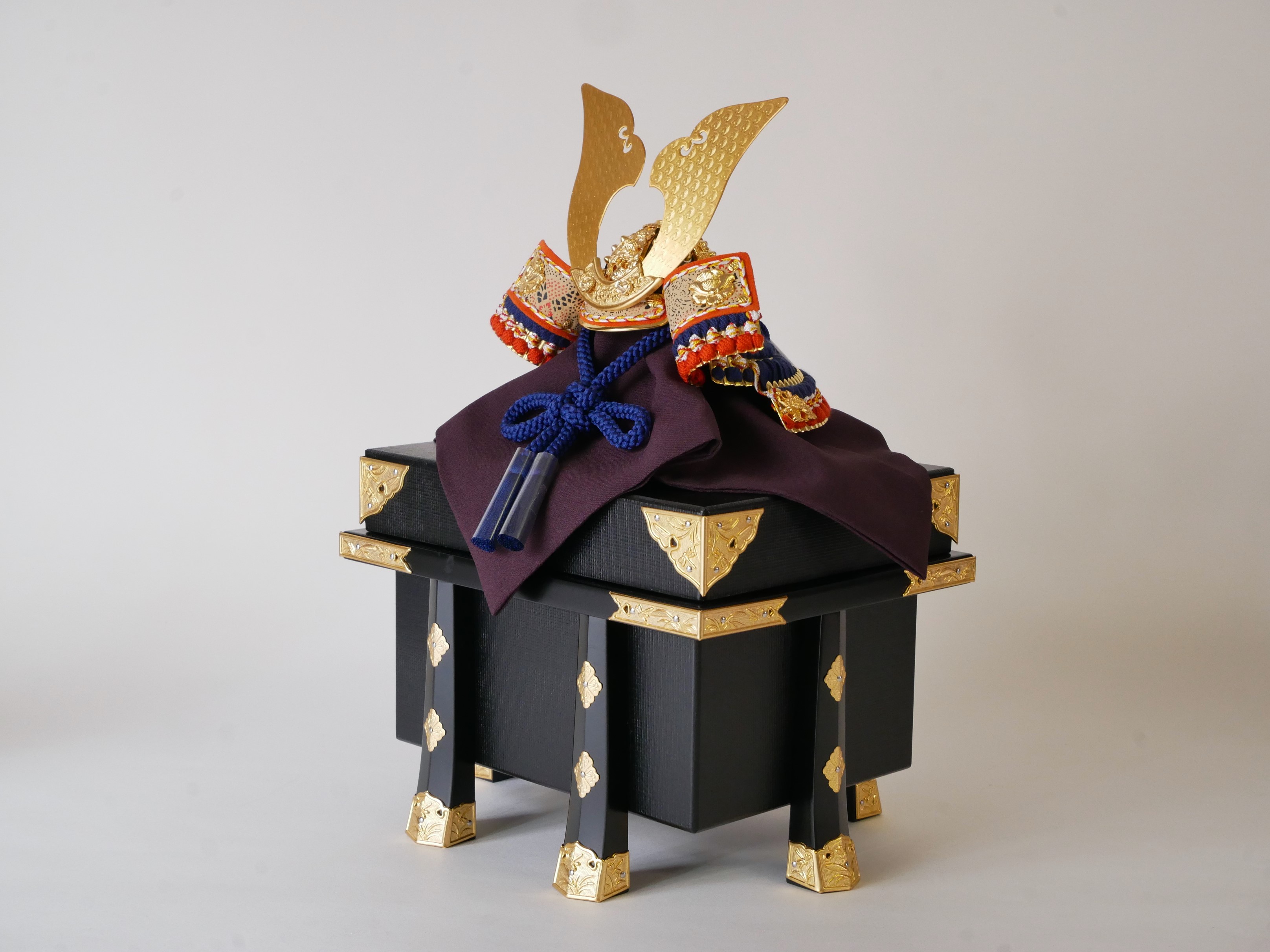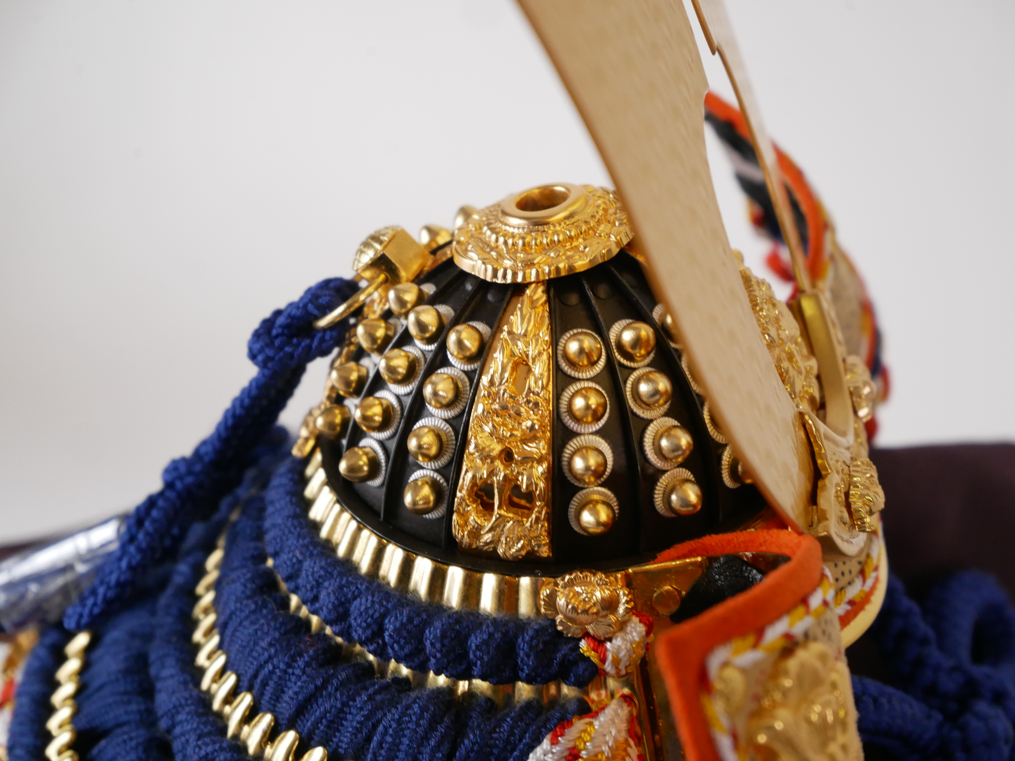 ・兜の房にはビニールが巻いてあります。紐のクセが付きにくいようにするためで、取り外してお飾りください。収納時、同じように紙などで巻いていただけるとクセが付きにくくなります。
