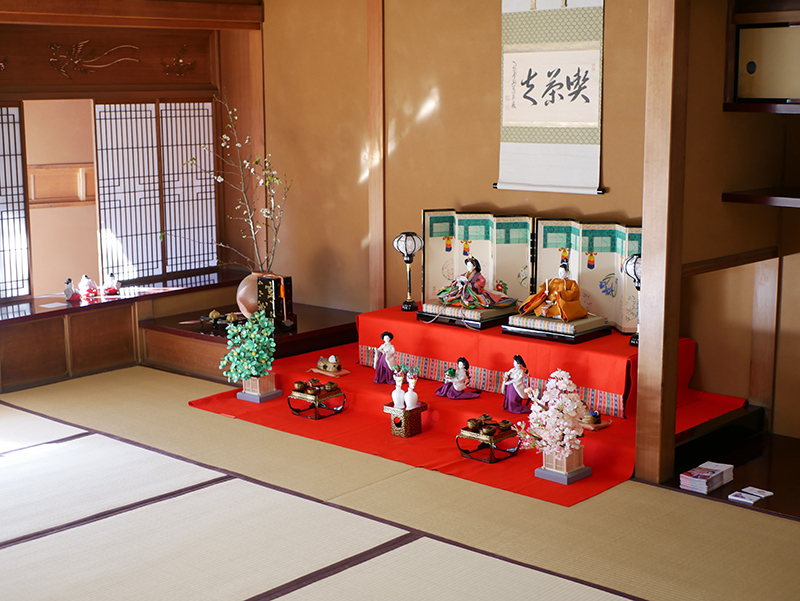 床の間など、飾るスペースが十分にある方にはこのようにお手持ちのお道具なども使っておあつらえします。七段飾りが理想的ですが、こうした飾り方もすてきです。